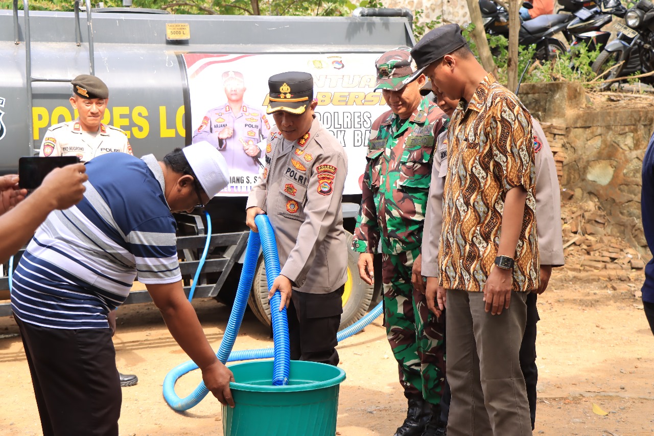 Kapolres Lombok Barat AKBP I Komang Sarjana, S.I.K., S.H., bersama jajarannya, hadir langsung di tengah masyarakat untuk mendistribusikan bantuan air bersih.