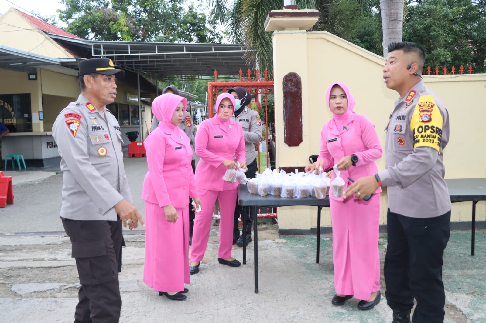 Kegiatan tersebut yakni membagikan takjil menjelang berbuka puasa bagi masyarakat pengguna jalan yang melintas di depan Mapolres Bima.