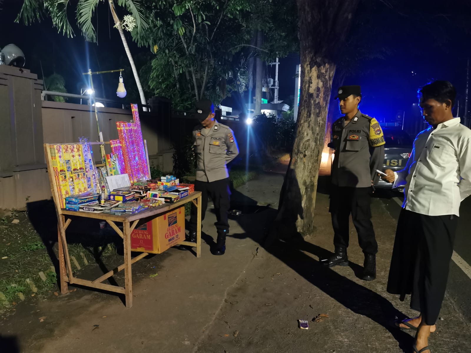 Lombok Timur – Personel Polsek Selong di bawah komando Kanit Intelkam Ipda Awaludin melakukan pengecekan terhadap pedagang kembang api dan petasan yang beroperasi di wilayah hukum Polsek Selong.Selasa (19/03/24), pukul 22.07 Wita.