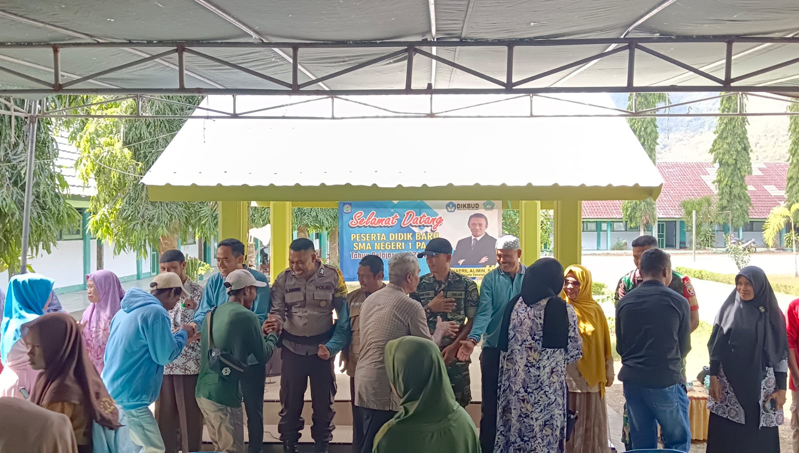 Tampak hadir yang mewakili forkopimcam, dewan guru, komite sekolah serta orang tua/wali murid beserta para siswa baru dan siswa lama SMAN 1 Pajo yang berlangsung di halaman sekolah. Sabtu, 13 Juli 2024, Pkl 08.30 wita