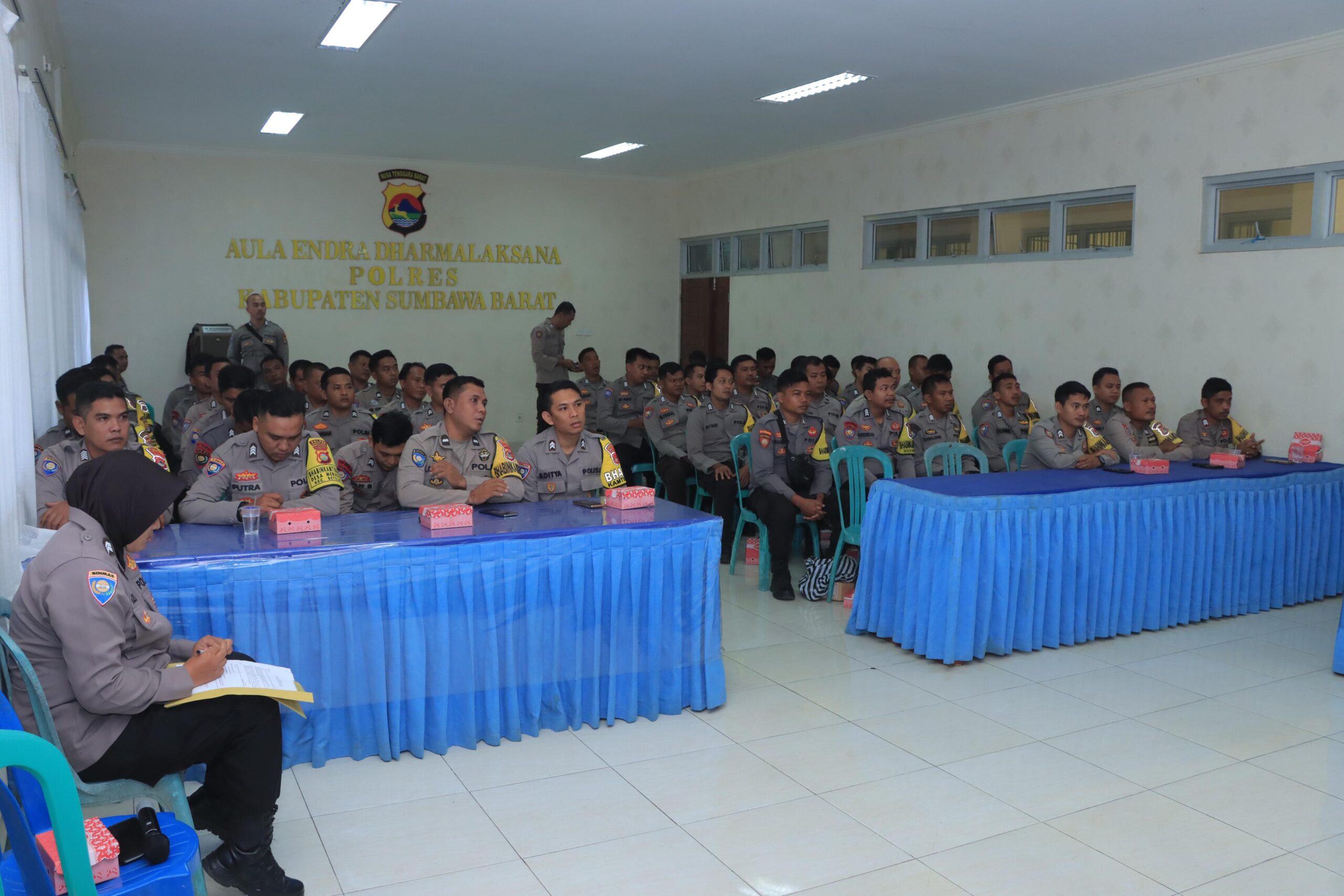 Sumbawa Barat – Seluruh Bhabinkamtibmas jajaran Polres Sumbawa Barat 64 (enam puluh empat) orang mengikuti Latihan Peningkatan Kemampuan Bhabinkamtibmas yang dilaksanakan di Aula Endra Dharma Polres Sumbawa Barat dan dibuka oleh Wakapolres Sumbawa Barat hari ini, Senin (10/06).