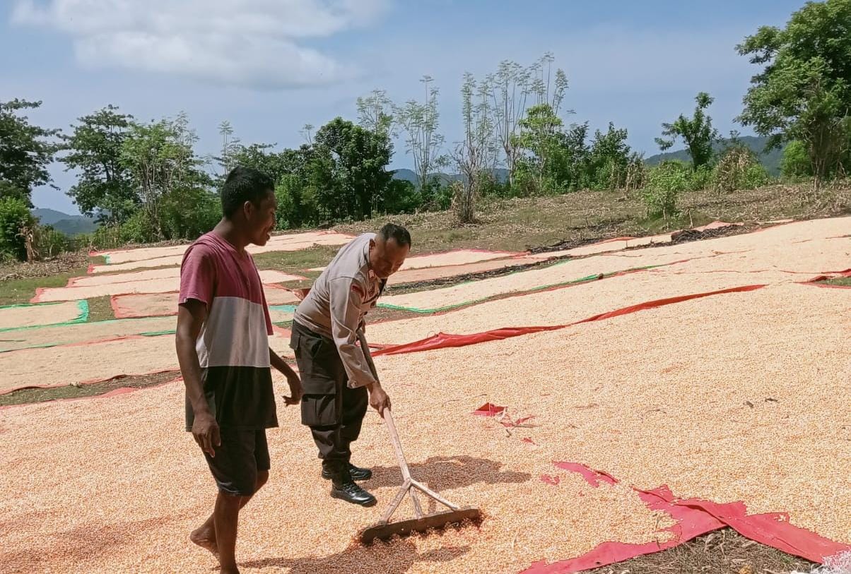 Bhabinkamtibmas Polsek Monta, Bantu Proses Pengeringan Jagung Warga di Desa Binaannya