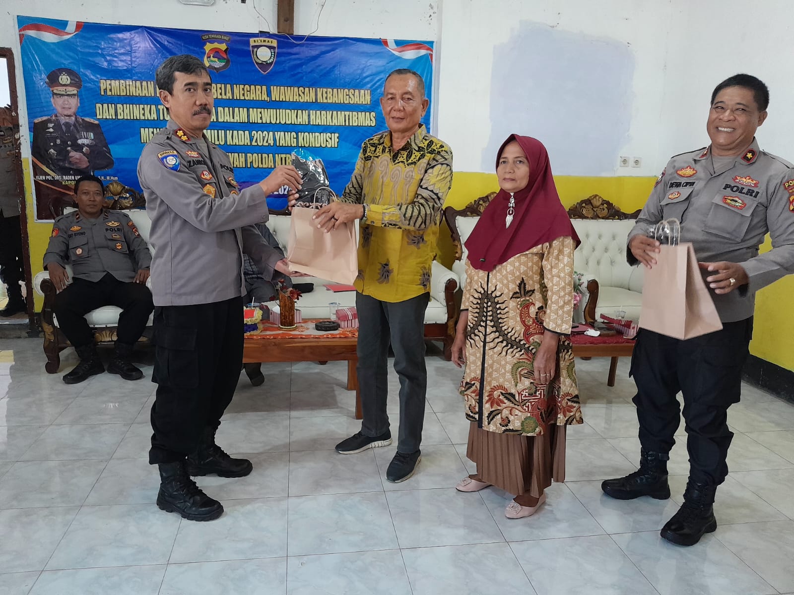 Sumbawa Besar-NTB, Binmas Polda NTB melaksanakan kegiatan Pembinaan Kesadaran Bela Negara, Wawasan Kebangsaan, dan Bhineka Tunggal Ika dalam mewujudkan Harkamtibmas menjelang Pemilu Kada 2024 yang kondusif diwilayah Polda NTB.