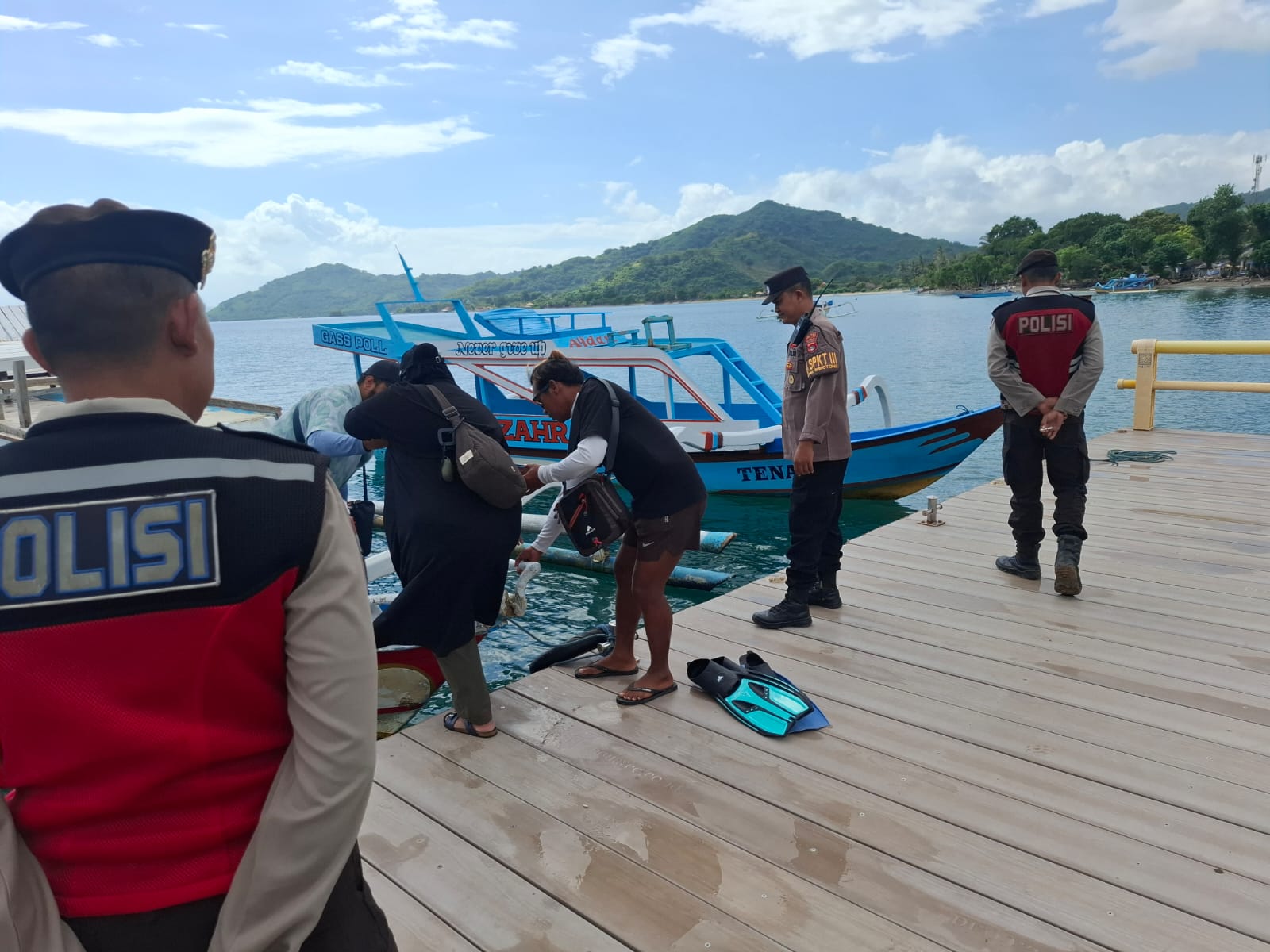 Tim patroli Polsek Sekotong, menyambangi obyek wisata Dermaga Tawun, Desa Sekotong Barat, Kecamatan Sekotong, Kabupaten Lombok Barat, Selasa (10/6/2025).
