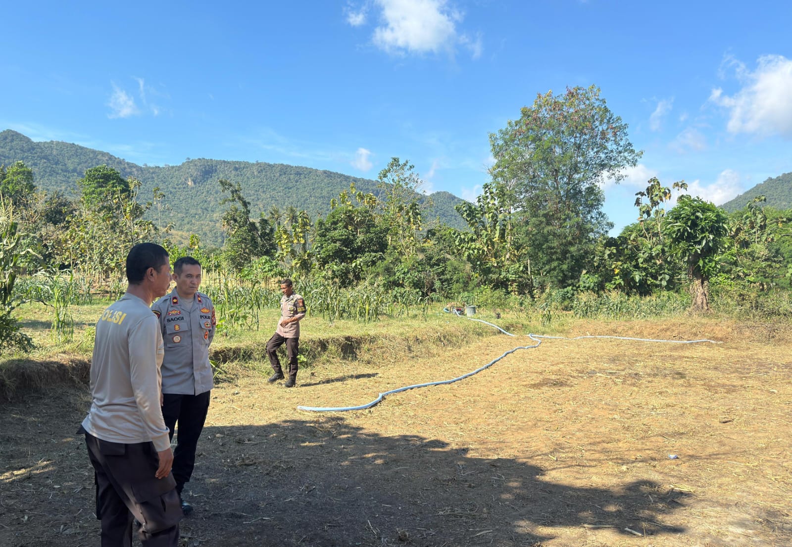 Wakapolres Bima Polda NTB Kompol Saogi Sujana Angsar melaksanakan pengecekan lahan yang akan dipakai untuk kegiatan penanaman jagung