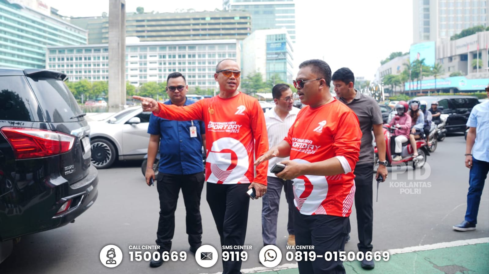 Jakarta- Kepala Korps Lalu Lintas (Kakorlantas) Polri, Irjen Pol Drs. Agus Suryonugroho, S.H., M.Hum., melakukan peninjauan langsung ke lokasi pelaksanaan Car Free Day di kawasan Bundaran HI, Jakarta, dalam rangka menyambut Hari Bhayangkara ke-79 yang jatuh pada tanggal 1 Juli mendatang.