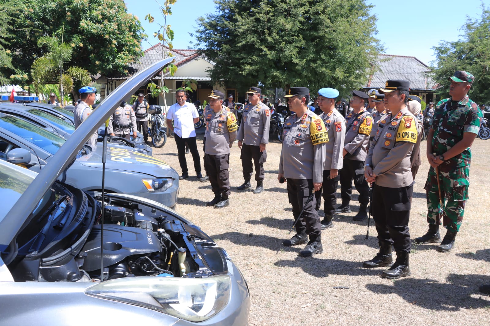 Tampak hadir Irwasda Polda NTB, KBP Dede Ruhiat Djunaedi, S.I.K., M.Hum., Karo Ops Polda NTB, KBP Abu Bakar Tertusi, S.I.K., S.H., M.Han., Karo Rena Polda NTB, KBP Suratno, S.I.K., M.Si., Dir Intelkam Polda NTB, KBP Dwi Indra Laksmana, S.I.K., M.Si., Dir Samapta Polda NTB, KBP Deddy Foury M, S.H., S.I.K., M.I.K., Kabid Propam Polda NTB, KBP Dedy Darmawansyah, S.I.K., S.H., M.H., Kapolres Sumbawa Barat, AKBP Yasmara Harahap, S.I.K., Dandim 1628/Sumbawa Barat, Letkol Inf. Andri Karsa, S.Sos., M.Han, Sekda Sumbawa Barat, Amar Nurmanysah, S.T., M.Si., Kajari Sumbawa Barat diwakili Rizkika, S.H., Komisioner KPU dan Bawaslu, Wakapolres, Danki Brimob, serta para PJU dan Kapolsek Jajaran Polres Sumbawa Barat.