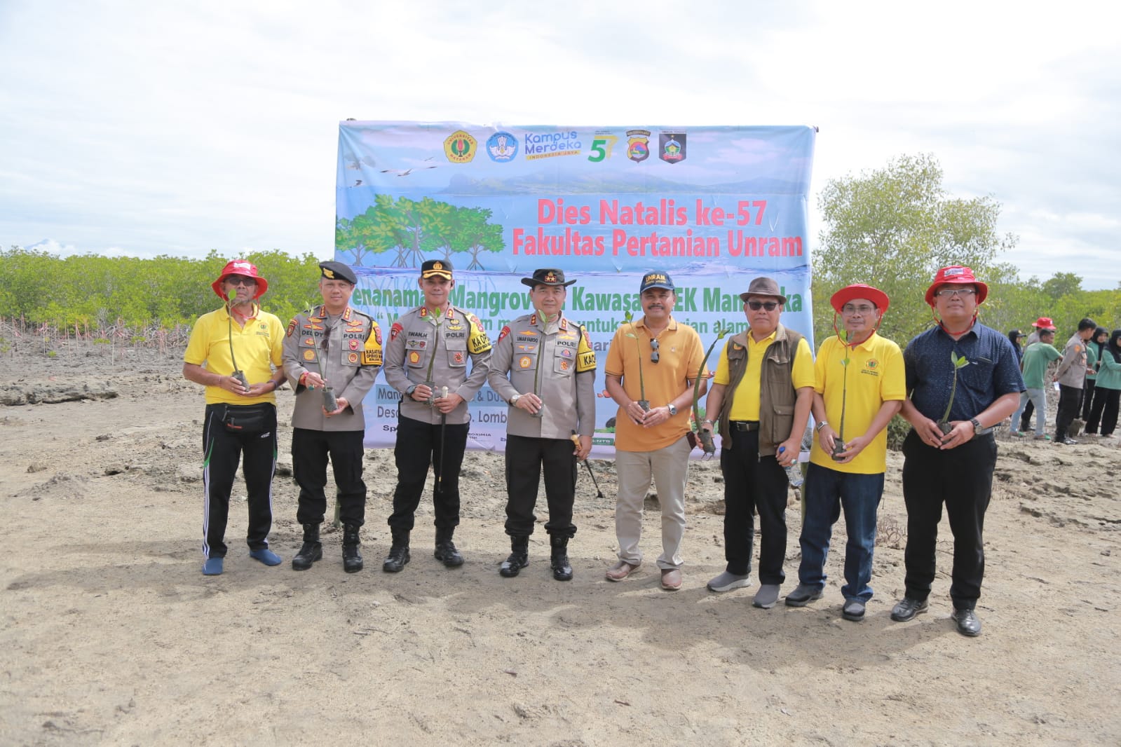 Penanaman pohon mangrove ini merupakan bentuk kerja sama antara Universitas Mataram dengan Polda NTB dalam rangka memperingati Dies Natalis ke – 57 Fakultas Pertanian Unram Mataram.
