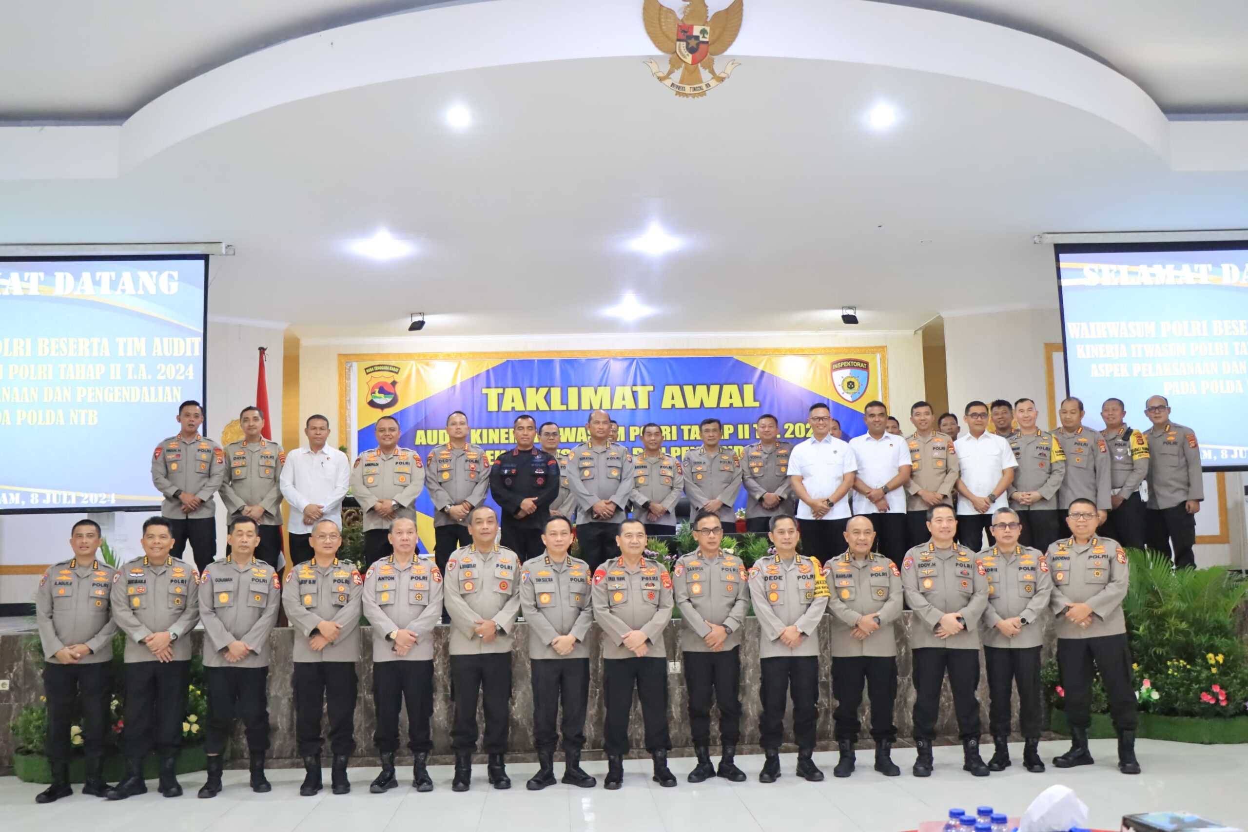 Mataram, NTB – Kapolres Bima Kota Mengikuti Taklimat Awal Audit Kinerja Itwasum Polri Tahap II bertempat di Aula Sasana Dharma Polda NTB, dilaksanakan Taklimat Awal Audit Kinerja Itwasum Polri Tahap II T.A. 2024 Aspek Pelaksanaan dan Pengendalian. Kegiatan ini dihadiri oleh Kapolres Bima Kota, AKBP Yudha Pranata, S.I.K, S.H. Pada Senin, 8 Juli 2024, pukul 09.00 WITA,