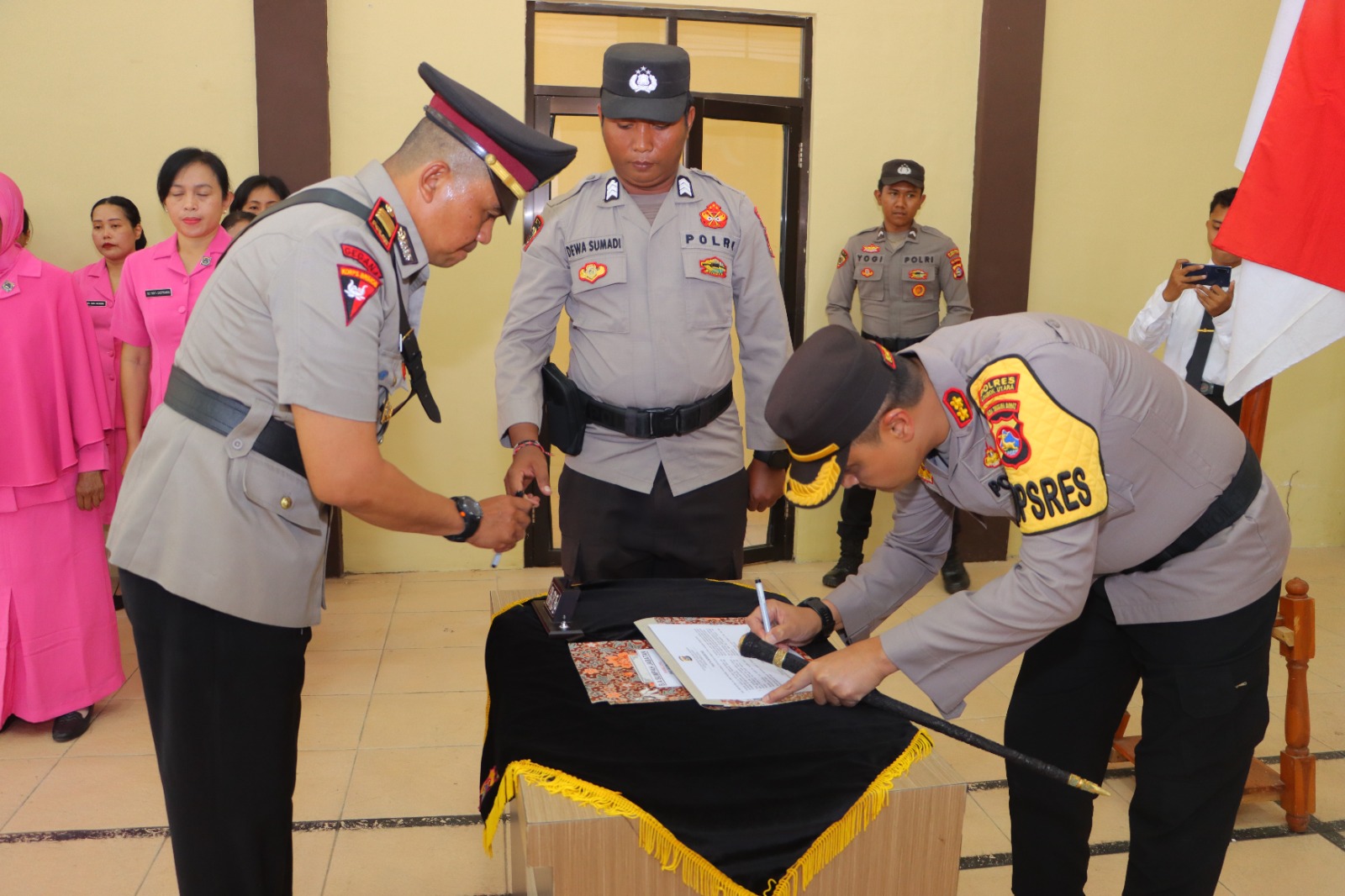 Dalam kegiatan sertijab dihadiri oleh para Pejabat Utama (PJU) Polres Lombok Utara dan Ketua Bhayangkari Cabang Lombok Utara NY Mira Didik dan staf, Kapolsek Jajaran dan Anggota Polres Lombok Utara.