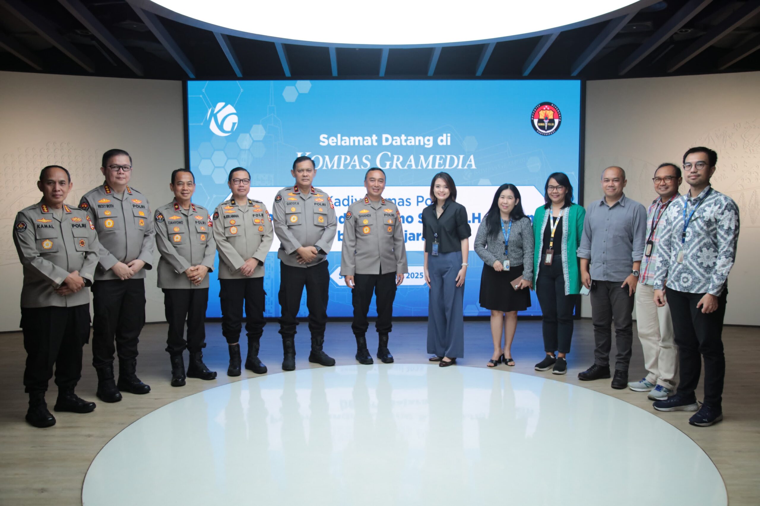 Jakarta. Kadivhumas Polri Irjen. Pol. Sandi Nugroho beserta jajaran melakukan media visit ke Kompas Gramedia. Kadivhumas Polri pun diterima langsung oleh Corporate Communication Director Kompas Gramedia, Glory Oyong.