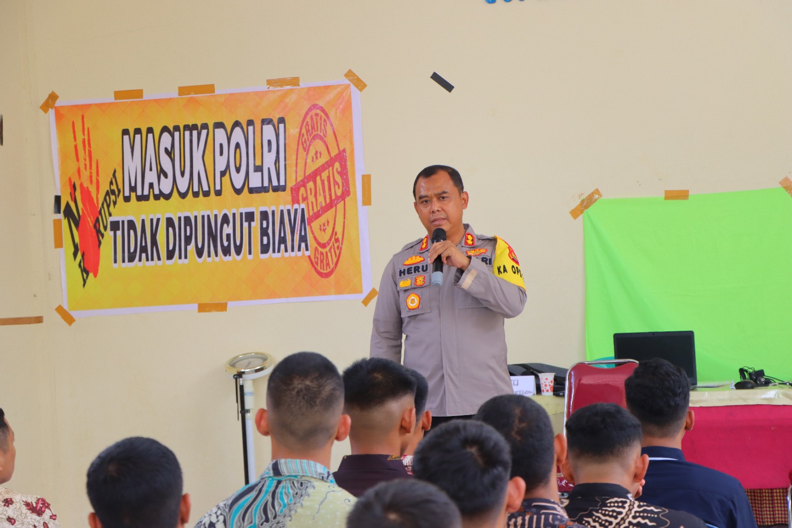 Selain melakukan pengecekan, AKBP Heru juga berkesempatan memberikan motivasi kepada seluruh peserta penerimaan anggota Polri.