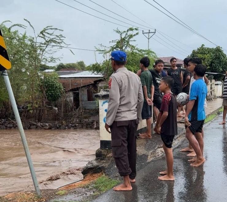 Siaga dan sigap membantu warga yang terdampak musibah banjir personel piket Satpolairud Polres Bima Polda NTB melaksanakan patroli dan pemantauan di Desa Bajo Kecamatan Soromandi Kabupaten Bima.