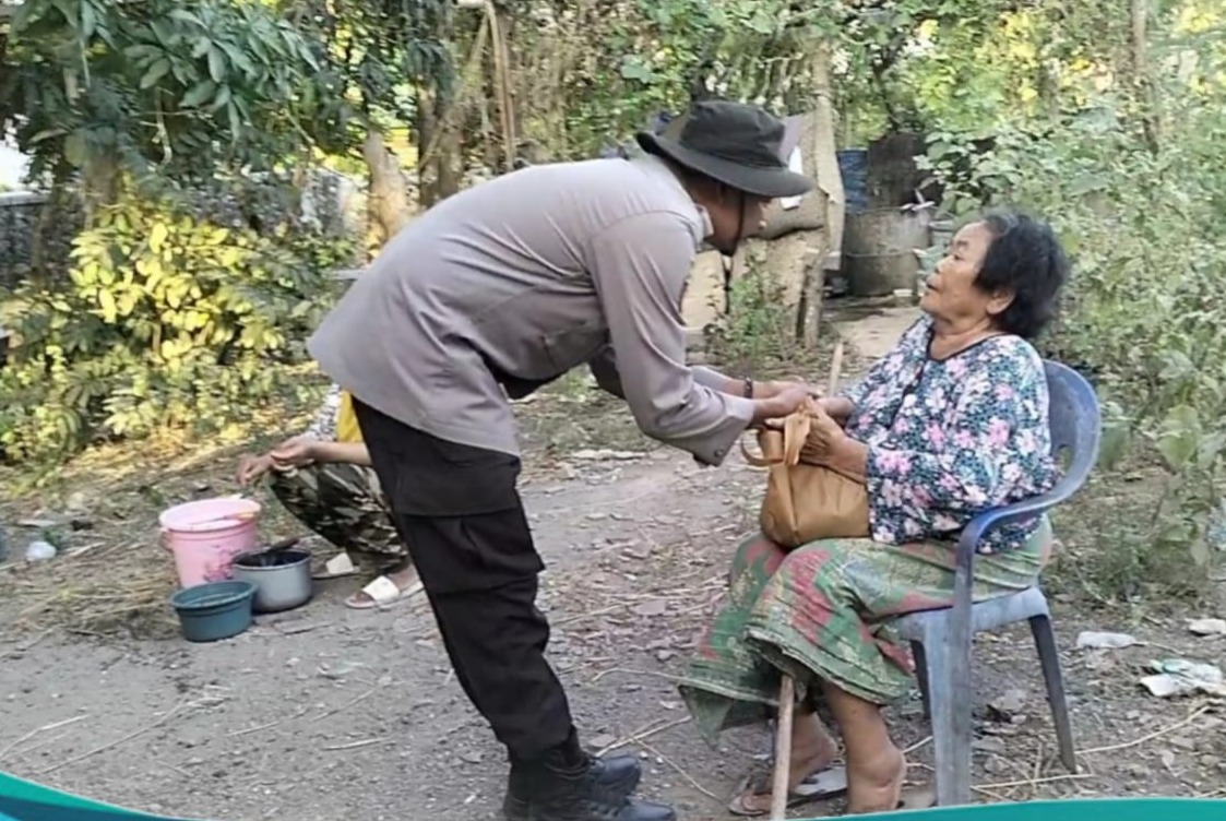 Seperti halnya kali ini, salah satu Personel Polsek Lape Aipda Dodi Hermansyah memberikan bantuan sembako kepada salah satu warga yang mengalami kekurangan ekonomi serta tuna netra yakni Ibu Siti wahyun umur 60 tahun yang berada di Dusun Batu Praga Desa Lape Kecmaatan Lape, Rabu (12/06/24).