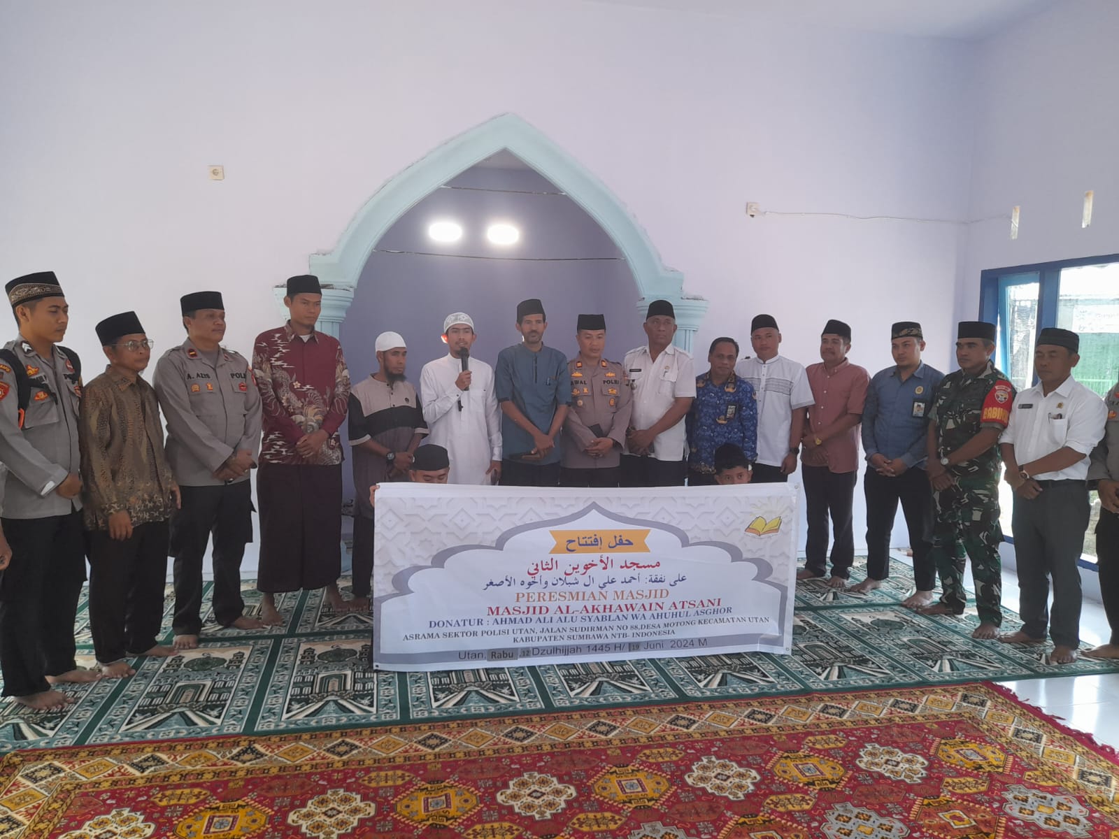 Sumbawa Besar NTB, Peresmian Masjid Bhayangkara Al Hikmah Mapolsek Utan berlangsung dengan penuh khidmat. Acara ini dihadiri oleh berbagai tokoh penting dan masyarakat setempat, menunjukkan dukungan dan kebersamaan dalam rangka memakmurkan tempat ibadah yang baru ini.Rabu (19/06/2024).