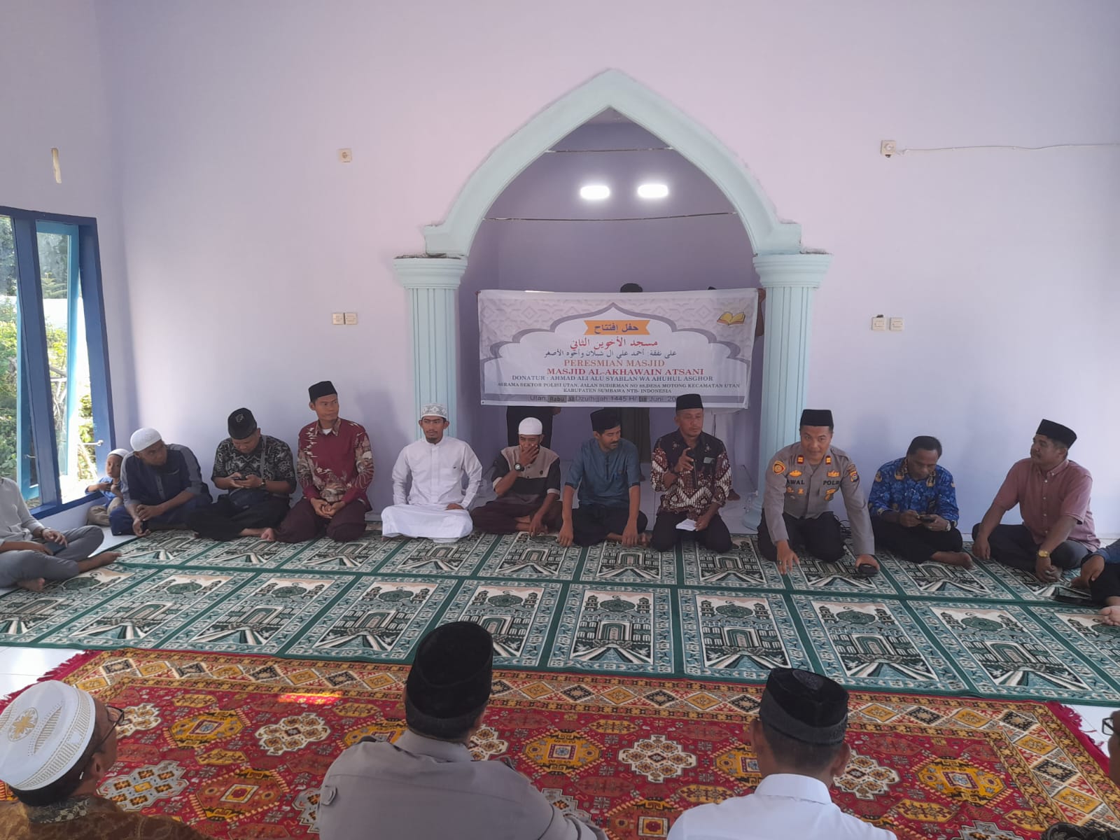 Dalam sambutannya, Kapolsek Utan, Iptu Awaludin S.AP., M.M. Inov., mengungkapkan rasa syukur kepada seluruh pihak yang terlibat dalam pembangunan masjid ini. “Alhamdulillah, dengan adanya Masjid Bhayangkara Polsek Utan, yang diusulkan sejak masa Kapolsek sebelumnya Iptu Mak Ruful Amaly SH, sebelum saya menjabat sebagai Kapolsek Utan, masjid ini akhirnya terlaksana dengan baik. Saya berharap masjid ini bisa bermanfaat bagi seluruh masyarakat,” ungkapnya.