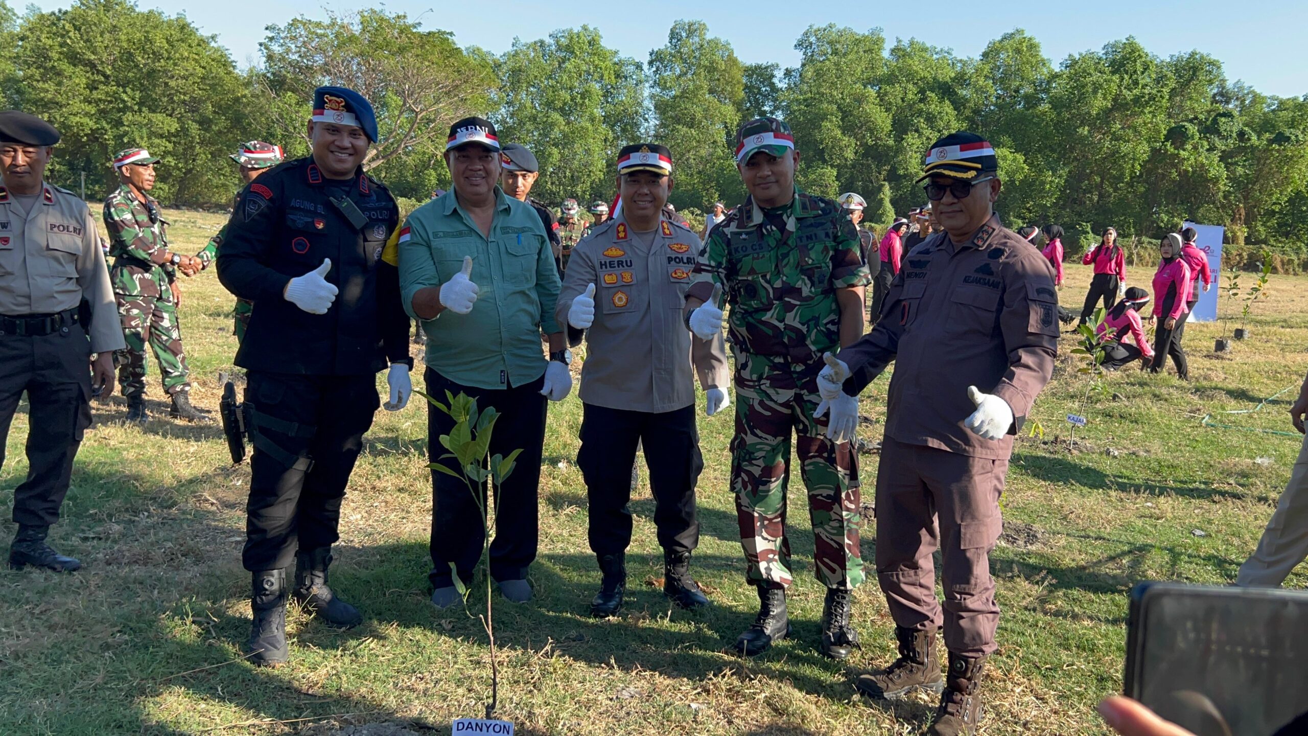 Kegiatan penanaman pohon serentak tersebut dipimpin langsung oleh Kapolres Sumbawa AKBP Heru Muslimin S.I.K, M.I.P, didampingi Para PJU dan Ketua Bhayangkari Cabang Sumbawa, serta di hadiri oleh tamu undangan yang terdiri dari Dandim 1607 Sumbawa Letkol CZI Eko Cahyo Setiawan SE. M. Han., Asisten III Pemkab Sumbawa Ir. Dirmawan., Kajari Sumbawa Hendi Arifin SH., dan Wa Danyon B Pelopor AKP Agung Budi Laksono S.I.K., serta diikuti oleh Personel TNI-Polri, Bhayangkari dan juga masyarakat.