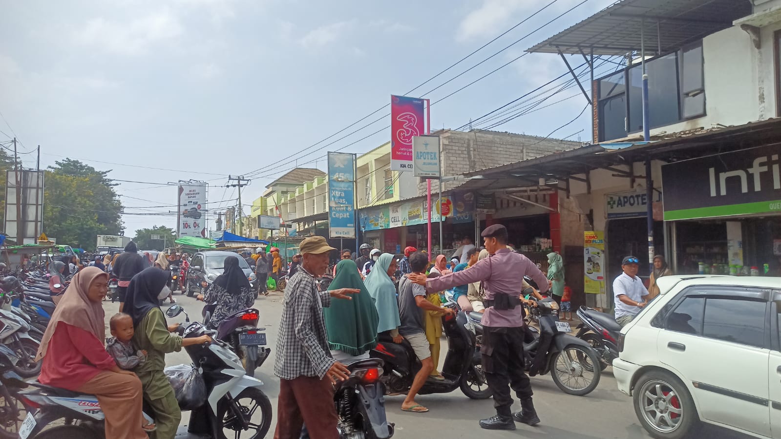 Lombok Timur – Personel Polsek Keruak melaksanakan pengamanan dan pengaturan arus lalu lintas di Simpang Tiga Pasar Umum Keruak.Selasa (08/04/24), pukul 09.00 Wita.