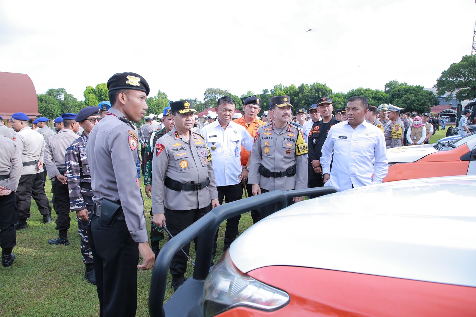 Dalam pelaksanaan apel, Kapolda NTB bersama para undangan melakukan pengecekan terhadap kesiapan seluruh personil serta pemeriksaan kesiapan kendaraan sebagai sarana pendorong kelancaran operasi Pengamanan dengan Sandi “Ketupat Rinjani tahun 2024”.