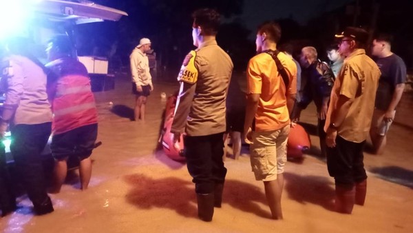 Personel Polres Bogor turun ke titik banjir di Gunungputri hingga malam hari. Ada pula petugas Polres Bogor yang membantu anak-anak untuk dievakuasi dari lokasi banjir.