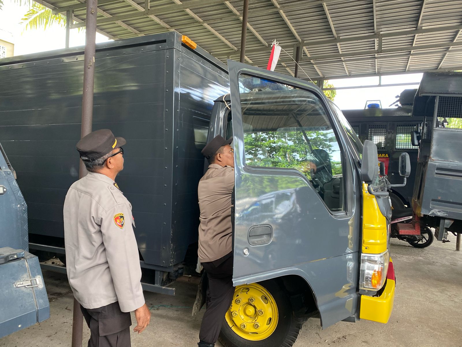 Melaksanakan pengecekan dan pendataan peralatan, perbekalan umum, dan kendaraan dinas R6 yang merupakan kendaraan pengangkut peralatan Dalmas Sat Samapta Polres Lombok Barat, Minggu (21/1/2024).