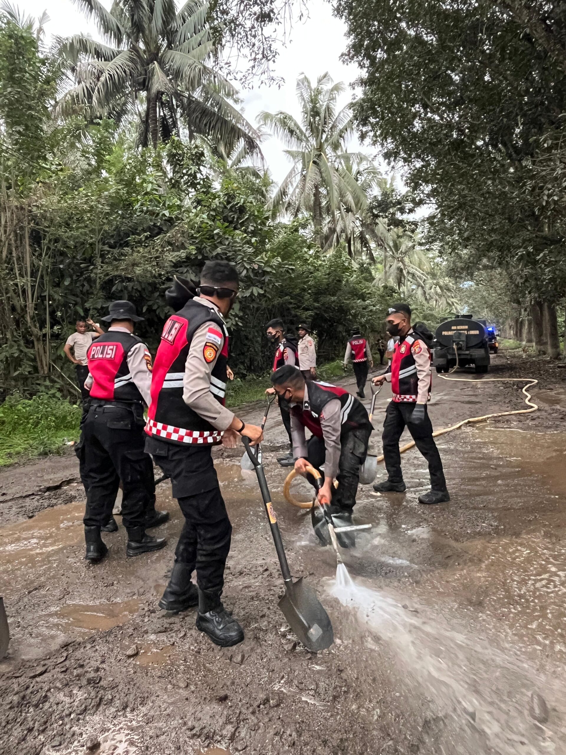 Flores Timur, 20 Juni 2025 — Polda Nusa Tenggara Timur (NTT) melalui personel Ditsamapta yang tergabung dalam Bawah Kendali Operasi (BKO) Flores Timur bergerak cepat melaksanakan kegiatan pembersihan di lokasi-lokasi yang terdampak erupsi Gunung Api Lewotobi Laki. Kegiatan ini dipimpin langsung oleh AKP J. Ronny N. Gonstal, S.H. dan melibatkan puluhan personel yang disebar ke beberapa titik rawan terdampak abu vulkanik.