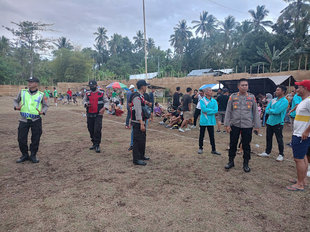 Kapolsek Tanjung Polres Lombok Utara AKP Remanto SH, bersama anggotanya, mengamankan jalannya pertandingan sepak bola Danny Cup 2024.