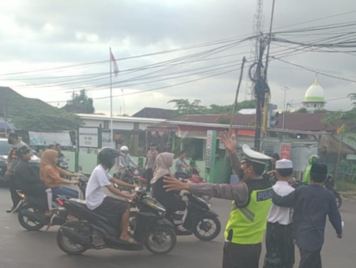 Selain melakukan pengamanan terhadap masyarakat yang sedang membeli takjil untuk berbuka puasa, anggota Polsek Kediri juga melakukan pemantauan dan pengaturan arus lalu lintas dan menyebrangkan para pejalan kaki.