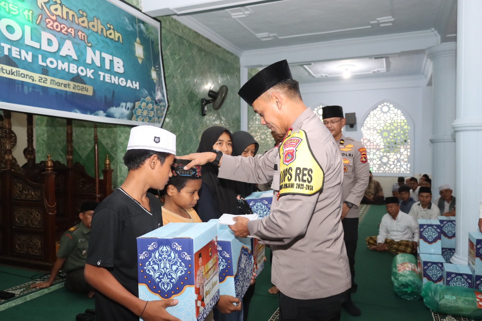 Lombok Tengah (NTB) – Kapolres Lombok Tengah AKBP Iwan Hidayat, SIK berikan bantuan kepada pengurus masjid Nurul Huda dan anak yatim yang ada di Dusun Kembang Kerang Desa Aik Darek Kecamatan Batukliang dalam rangka Safari Ramadhan 1445 H.
