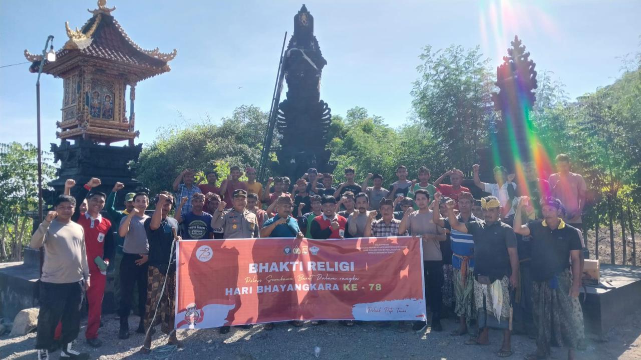 Sumbawa Barat – Dalam rangka menyambut HUT Bhayangkara ke-78, Polsek Poto Tano menggelar kegiatan Bhakti Religi berupa bersih-bersih tempat ibadah. Kapolsek Poto Tano, Ipda Abdul Gafir, bersama jajarannya membersihkan Pura Paloma di Dusun Samarekat, Desa Kokarlian, Kecamatan Poto Tano, Kabupaten Sumbawa Barat, Rabu (12/06).