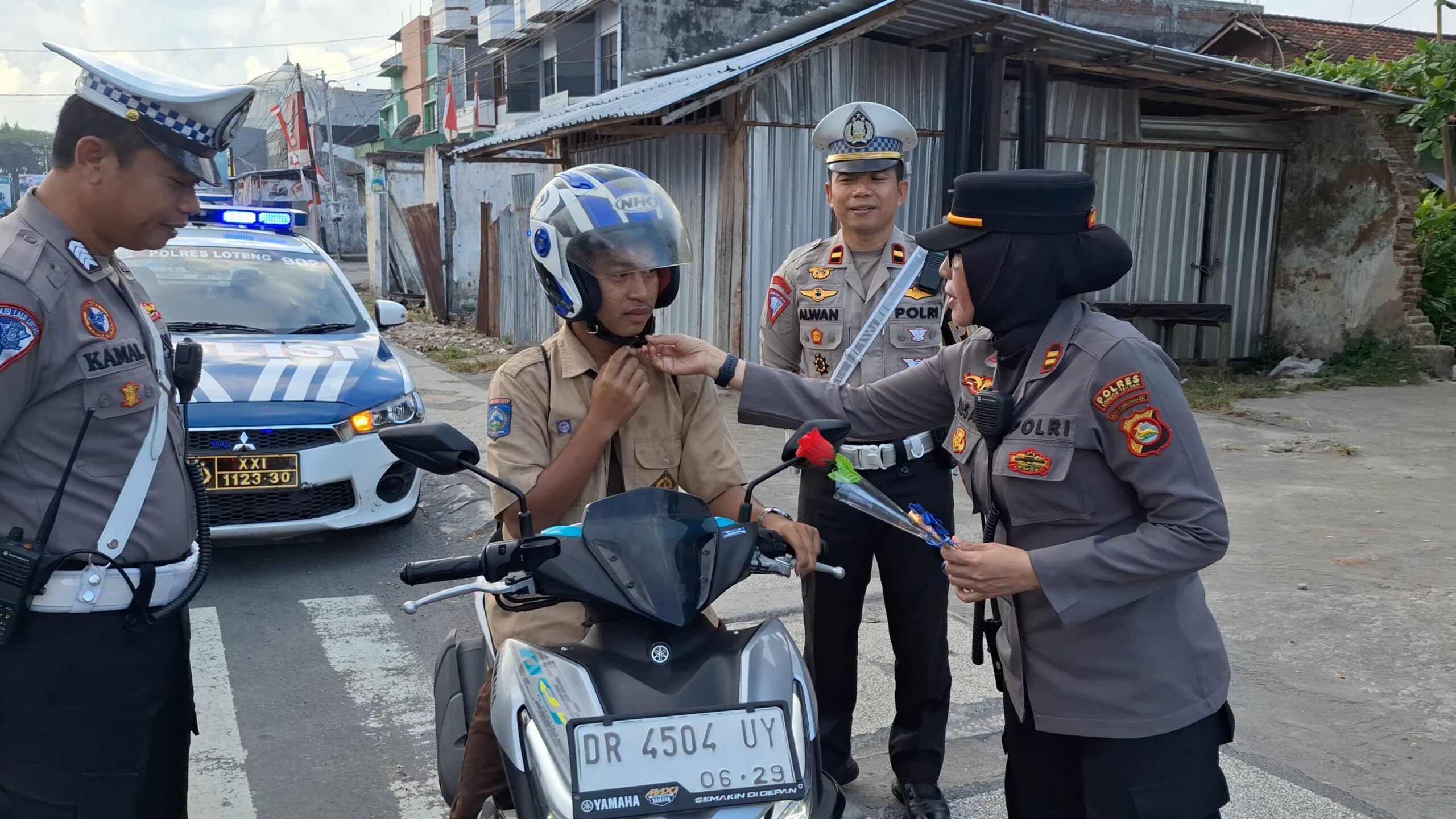Lombok Tengah, (NTB) – Sambut Hari Ulang Tahun (HUT) Polisi Wanita (Polwan) ke 76, Polwan Polres Lombok Tengah menggelar aksi simpatik dengan membagikan bunga dan coklat kepada para pengguna jalan yang melintas di pusat Kota Praya, Sabtu (24/8).