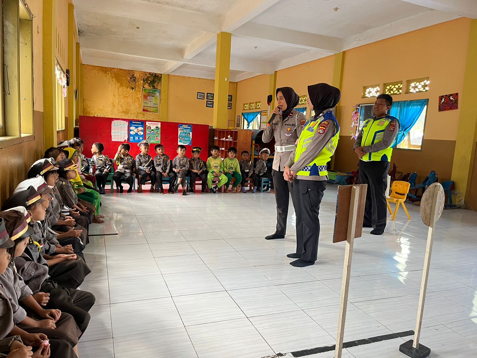 Lombok Tengah (NTB) – Satuan Lalu Lintas Polres Polres Lombok Tengah melaksanakan sosialisasi disiplin lalu lintas sejak dini kepada anak-anak di PAUD (Pendidikan Anak Usia Dini) Muli Munti Kecamatan Praya Barat.