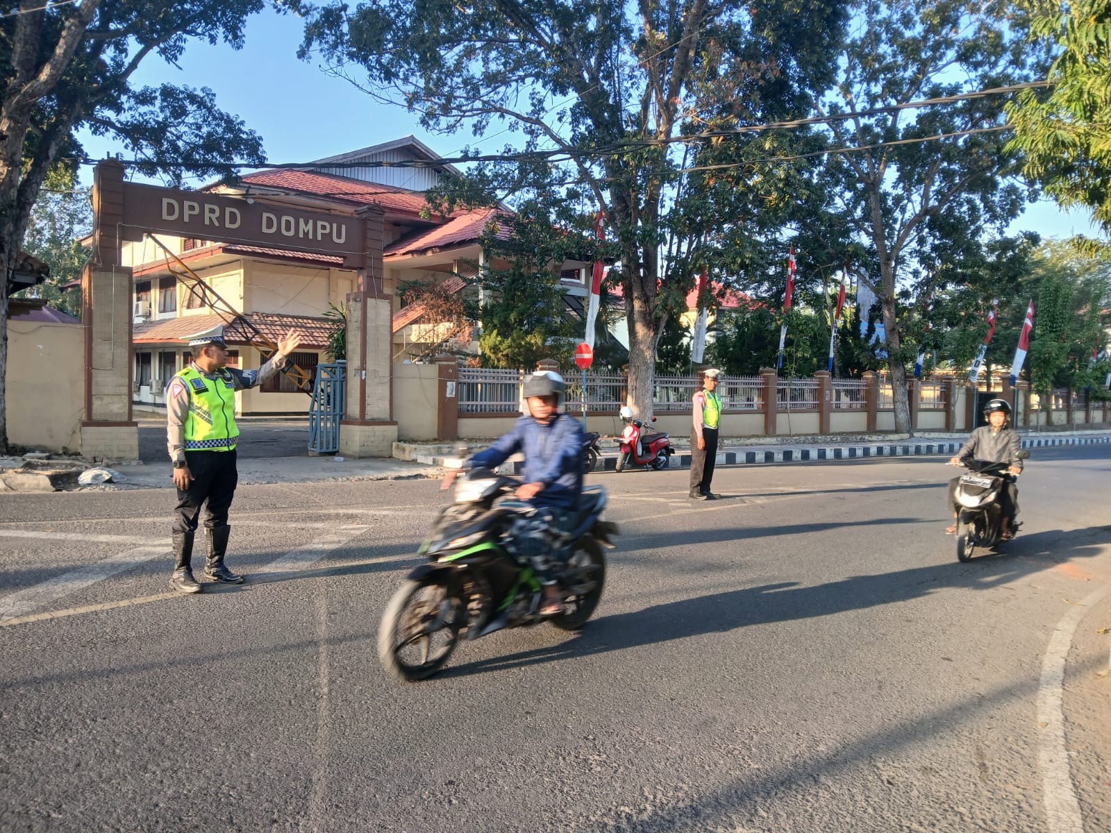 Personel yang terlibat dalam kegiatan ini adalah anggota Satlantas Polres Dompu. Mereka melakukan pengaturan lalu lintas secara rutin pada pagi hari, bertujuan untuk menciptakan kelancaran arus kendaraan dan mengurangi potensi kecelakaan serta kemacetan dan Memberikan teguran simpatik kepada pengendara R2 yang tidak menggunakan Helm SNI, bonceng tiga, lawan arus, knalpot tidak sesuai spektek dan tidak tertib lalu lintas lainnya.