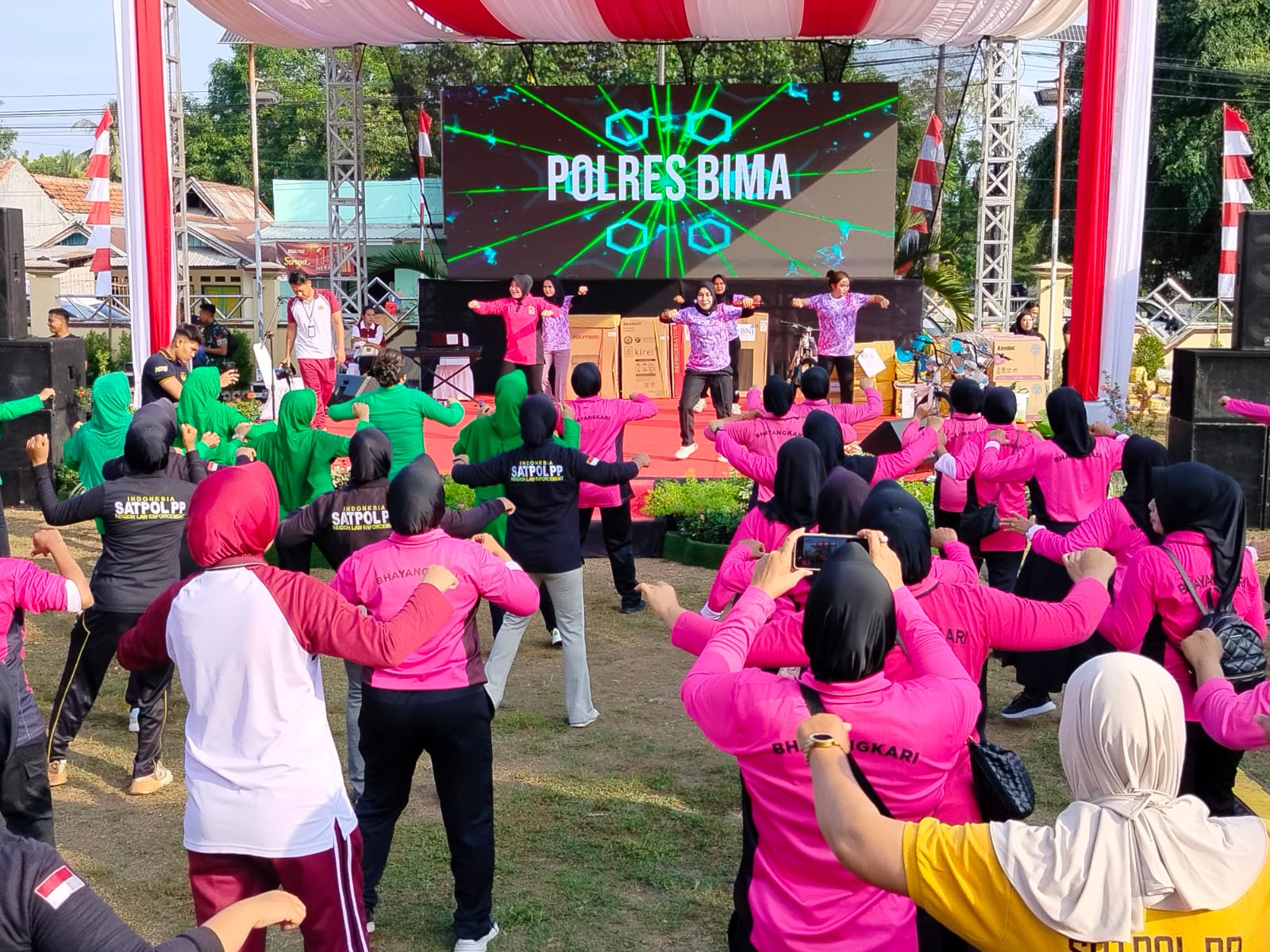 Kegiatan yang dimulai sejak pukul 06.30 Wita ini diikuti oleh ratusan personil dari TNI-Polri dan Forkopimda beserta istri yang dipimpin langsung oleh Kapolres Bima AKBP Eko Sutomo S.I.K., M.I.K., didampingi oleh Ketua Bhayangkari Cabang Bima Ny. Dian Eko Sutomo.