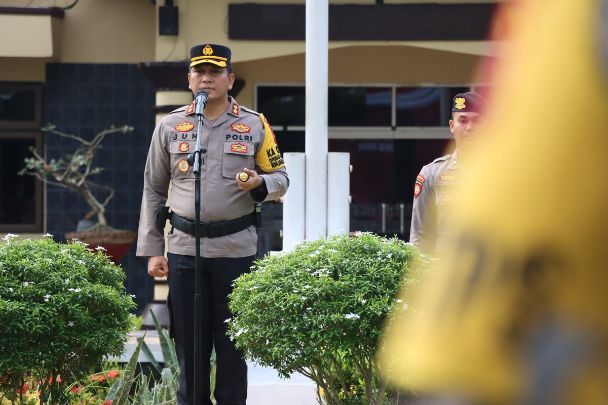 Kapolres Lombok Barat AKBP Bagus Nyoman Gede Junaedi, S.H, S.I.K, M.A.P memimpinnya langsung dan diikuti oleh para pejabat utama, perwira, bintara, dan personil polsek jajaran.