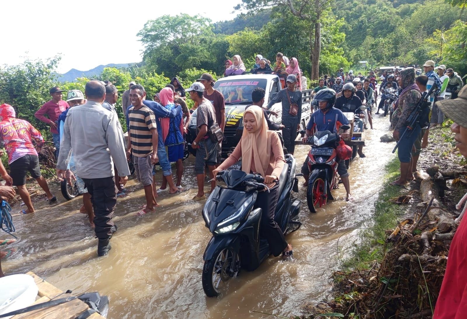 Terjadi kemacetan di jalan lintas Simpasai- Monta diakibatkan oleh tingginya curah hujan yang mengguyur wilayah Kecamatan Monta pada Sabtu malam.