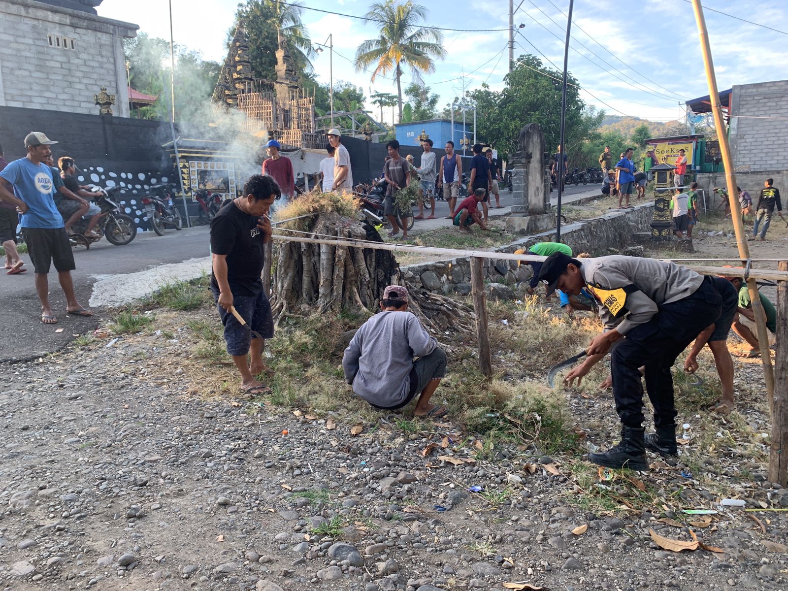 Sumbawa Besar-NTB, Bhabinkamtibmas Desa Sabedo Kecamatan Utan Briptu Gede Astu Mudita melaksanakan kegiatan gotong royong bersama warga binaannya pada hari Selasa (06/08/24) pagi.