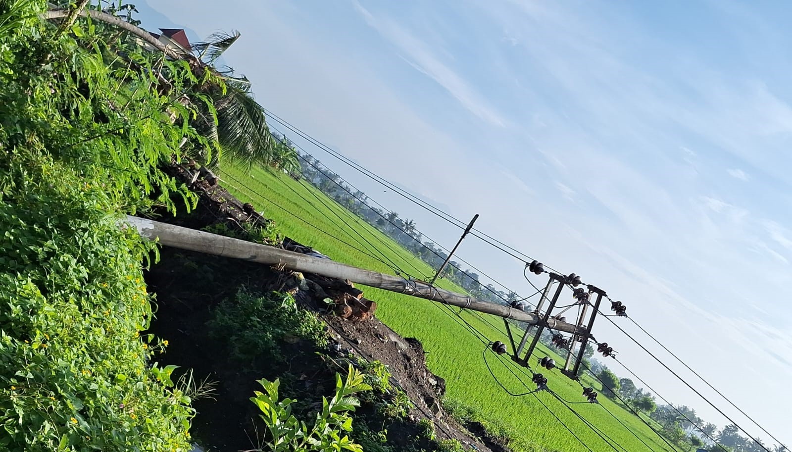 Menurut Sumerta, tumbangnya tiang listrik tersebut diduga disebabkan karena dampak pelebaran parit saluran irigasi di pinggir jalan.