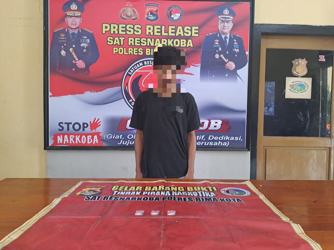 Kota Bima, NTB (26/1) – Tim Operasional Satuan Reserse Narkoba (Satresnarkoba) Polres Bima Kota kembali menunjukkan kinerja cepat dan efektif dalam memberantas peredaran gelap narkoba. Seorang pengedar narkoba berinisial FM (40), warga Kecamatan Raba Kota Bima, berhasil diamankan oleh Tim Cobra Bravo Satresnarkoba pada Kamis kemarin. Penangkapan dilakukan saat pelaku hendak menjual dan mengedarkan narkoba jenis sabu.