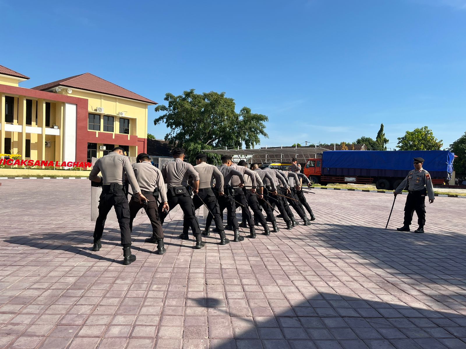 “Latihan dalmas ini merupakan Latihan rutin yang dilaksanakan oleh personal Sat Samapta Polres Sumbawa untuk meningkatkan kemampuan fisik dan keterampilan dalam pengendalian masa”. Jelas Kasat.