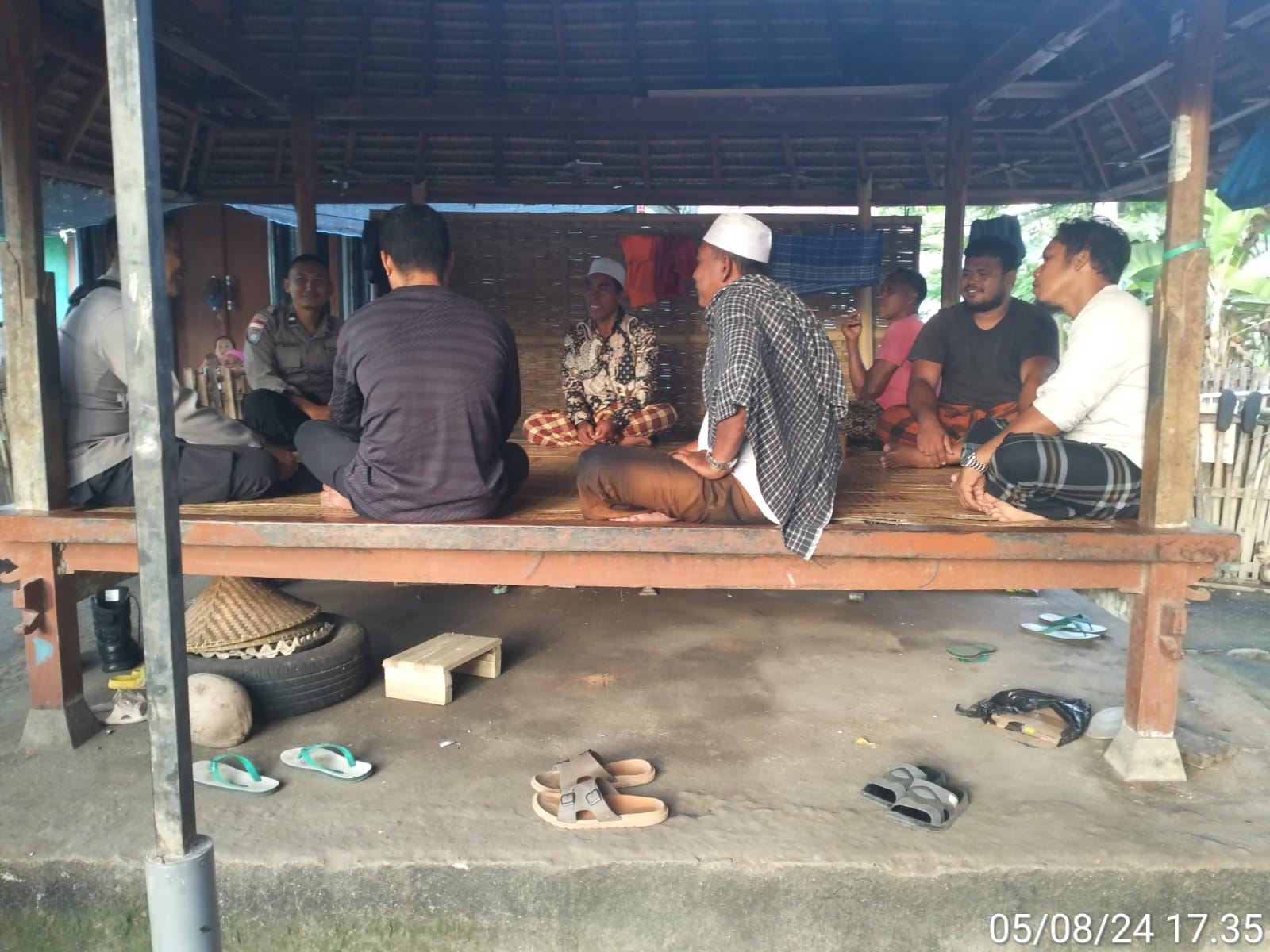 Kapolsek Sekotong bersama Bhabinkamtibmas Desa Buwun Mas, Aipda Teguh Martanto, menyambangi kediaman H. Rabik. Seorang tokoh masyarakat di Dusun Pangsing, Desa Persiapan Pengantab, Kecamatan Sekotong.