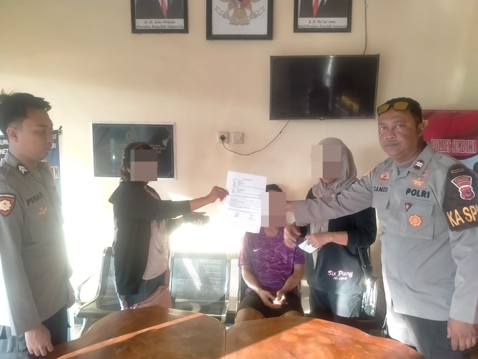 Personel Piket Polsek Alas bersama Bhabinkamtibmas Desa Dalam Briptu I Gede Agus Pinankandia mempertemukan kedua warga binaan di Mapolsek Alas terkait masalah pencurian HP merk Samsung A12 milik Sdri. S yang terjadi pada hari Minggu 5 Mei 2024 sekitar pukul 10.00 wita di kos kosan yang berlokasi di Dusun Telaga Baru, Desa Dalam yang dilakukan oleh Sdr. R.