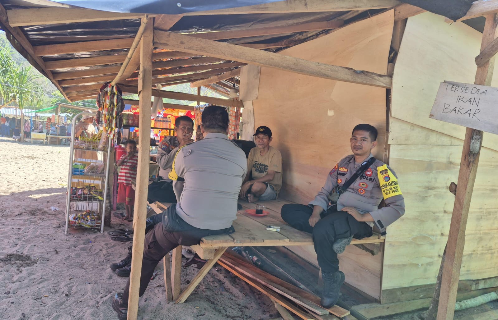 Personel Polsek Monta Polres Bima Polda NTB melaksanakan patroli pengamanan (PAM) wisata pantai wane yang terletak di Desa Tolotangga, Kecamatan Monta Kabupaten Bima.